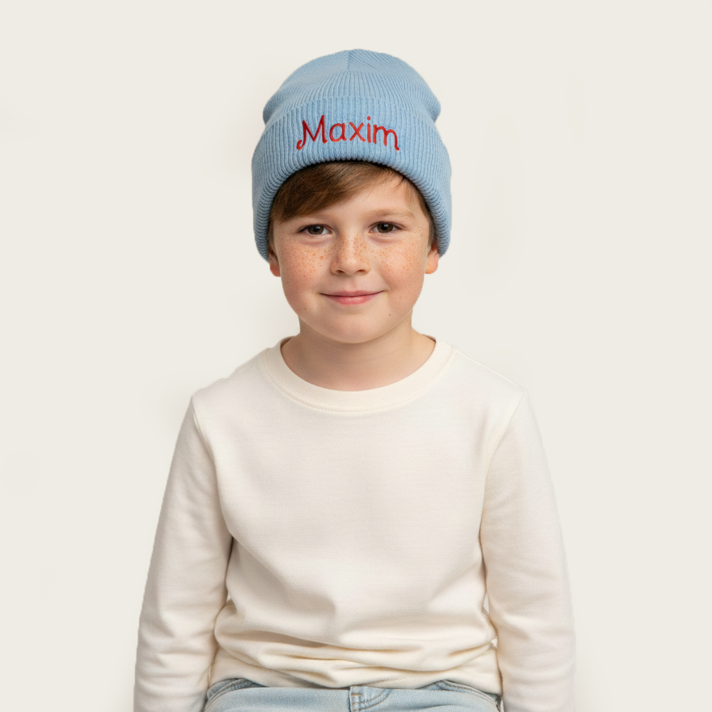 Of je nu kiest voor een subtiele afwerking of een vrolijke kleur, deze gepersonaliseerde kindermuts is een echte must-have voor de winter.